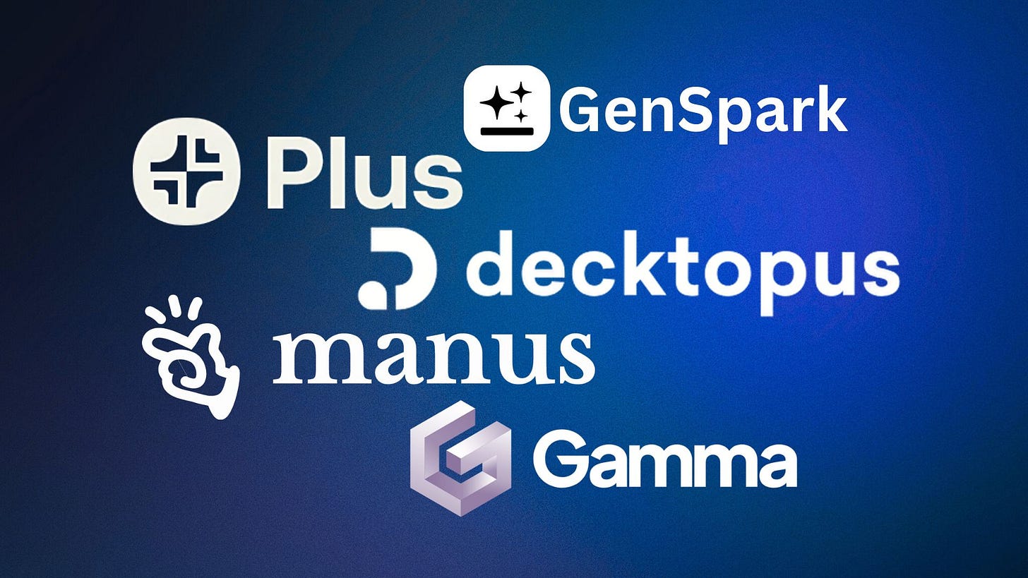 In the past few months, AI presentation tools have improved a lot. You’ll now find AI agents like Manus AI and GenSpark AI offering full deck generation right inside their platforms. Even ChatGPT and Poe have added apps that can generate PowerPoint files for you with just a text prompt.