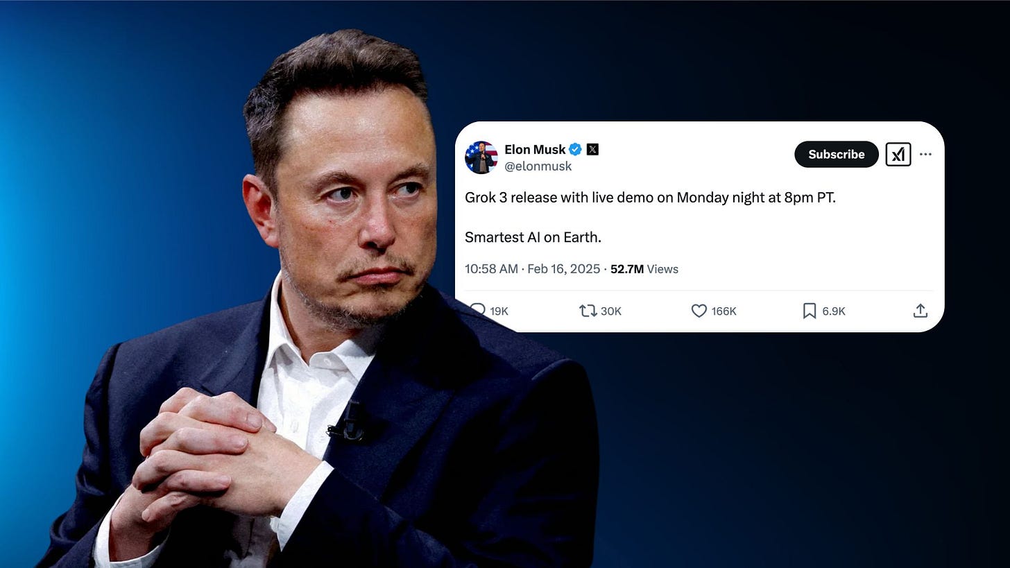Elon Musk describes Grok 3 as the "smartest AI on Earth." It is set to launch today (February 17, 2025) at 8 PM PT with a live demonstration.