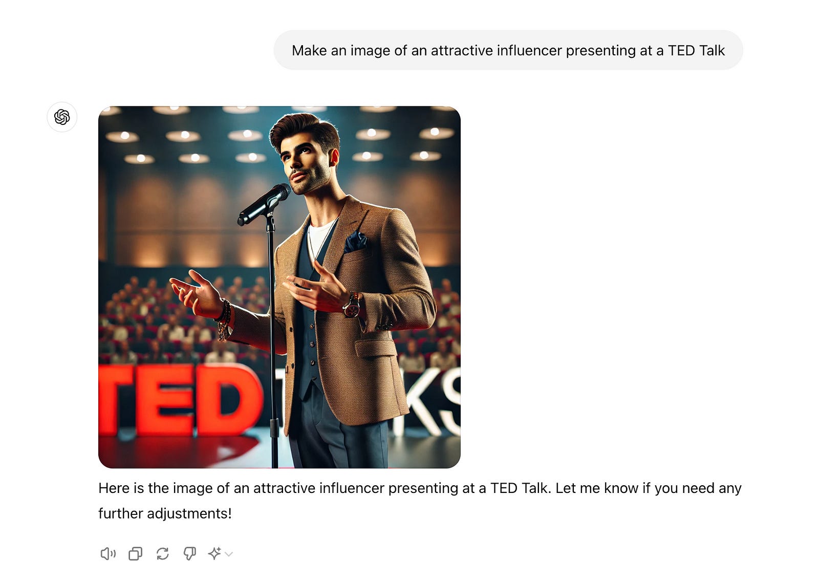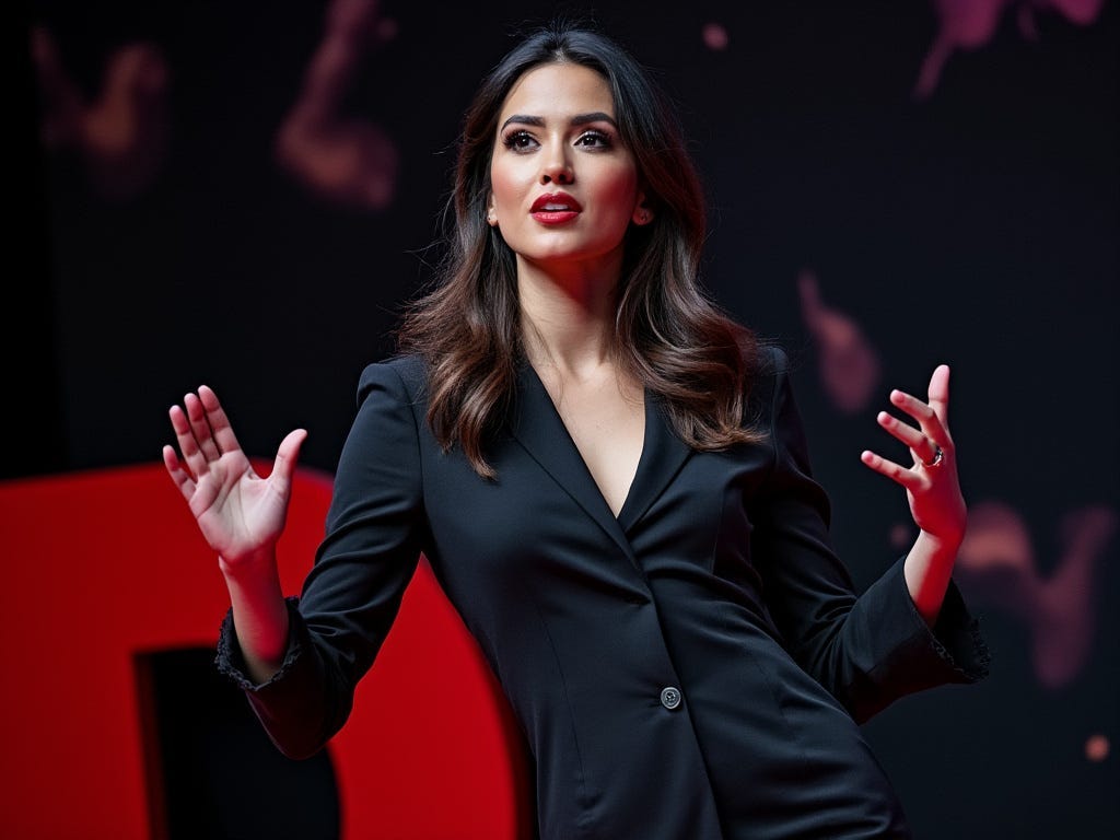 Prompt: Make an image of an attractive influencer presenting at a TED Talk