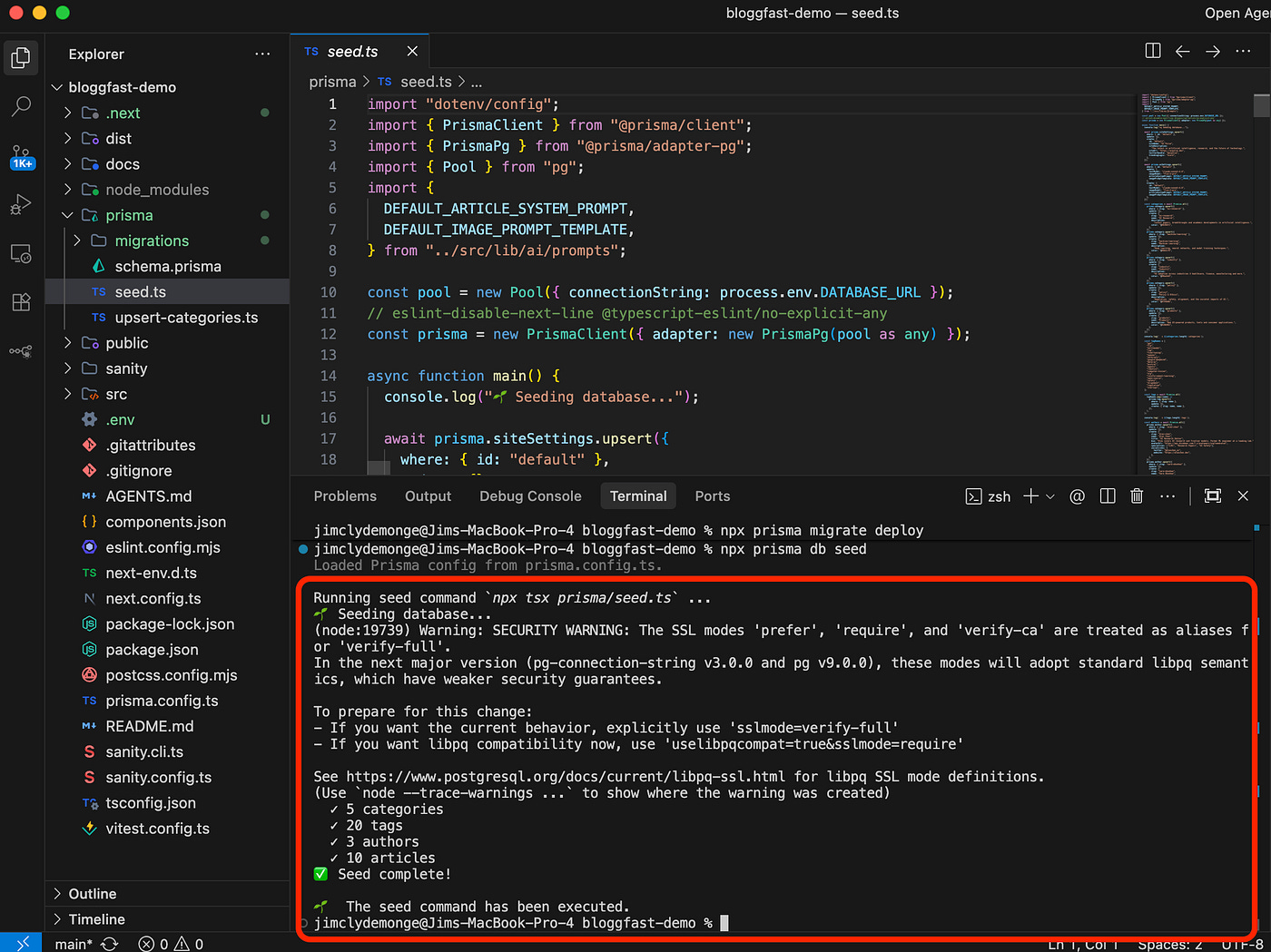 npx prisma db seedConfirm the success message in the DB seed command. If yes, check if the remote database is populated properly.
