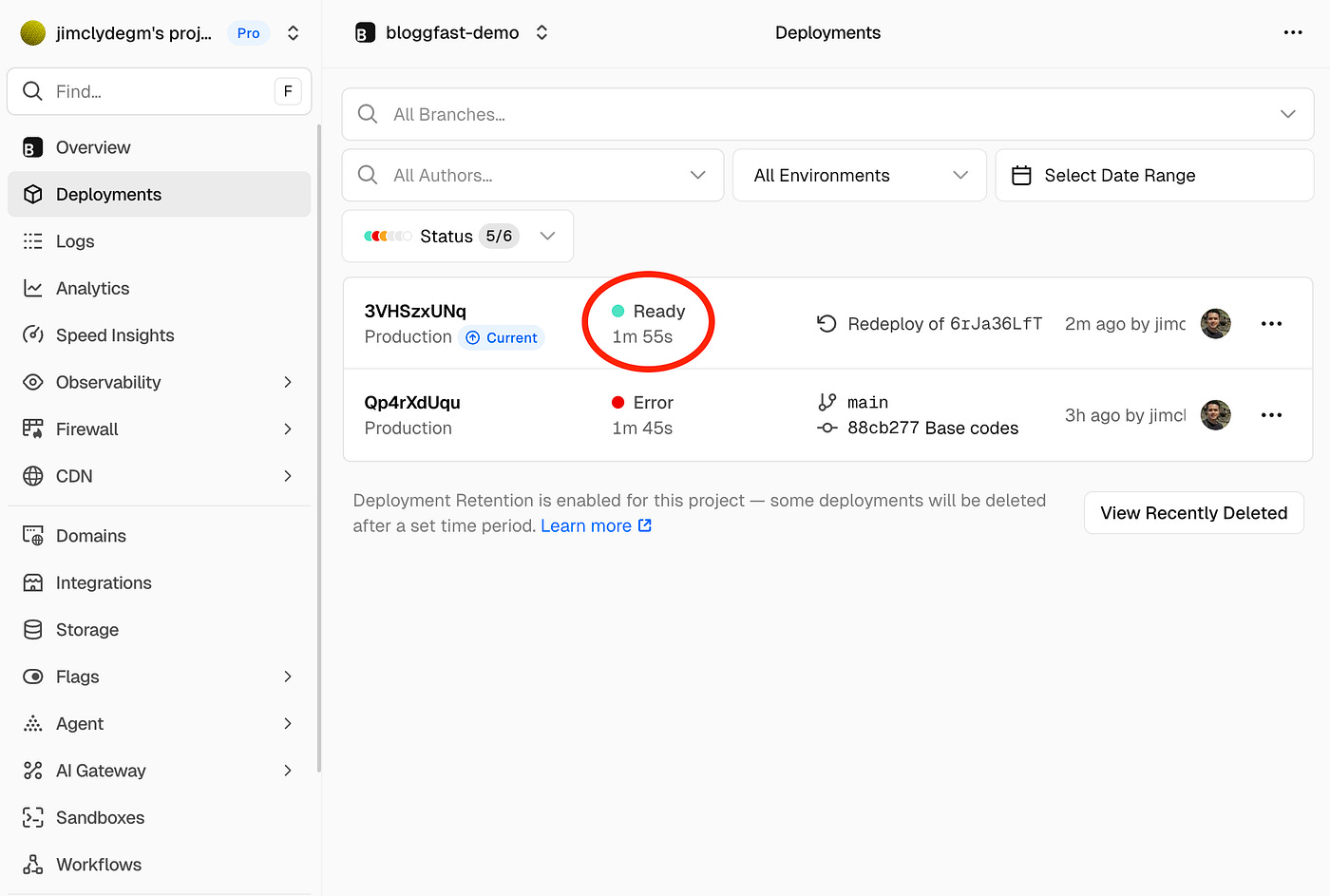 Once the project is configured, trigger the redployment and the project should build successfully.