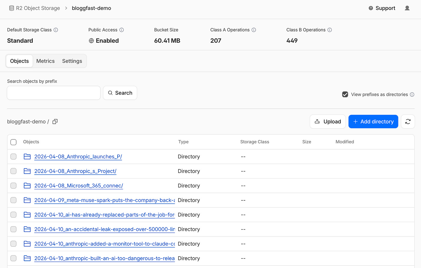 The uploaded files are also organized cleanly inside the R2 bucket and synced with the Neon database.