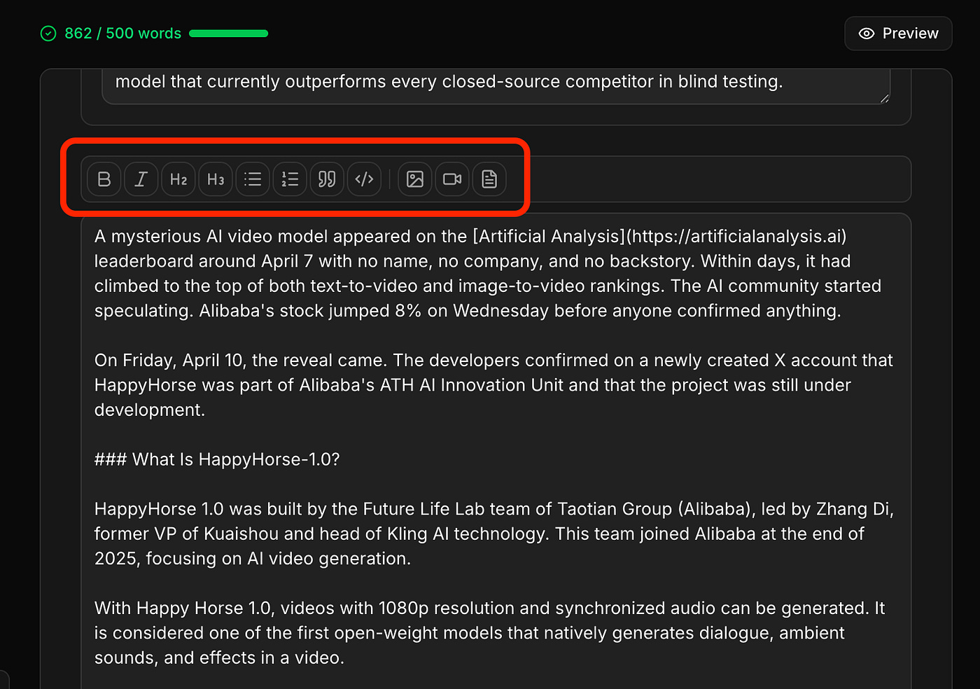 And just like that, a complete blog post about Alibaba’s new HappyHorse Video AI model can be published in under a minute. If I had done the whole thing manually, it probably would have taken me at least an hour.